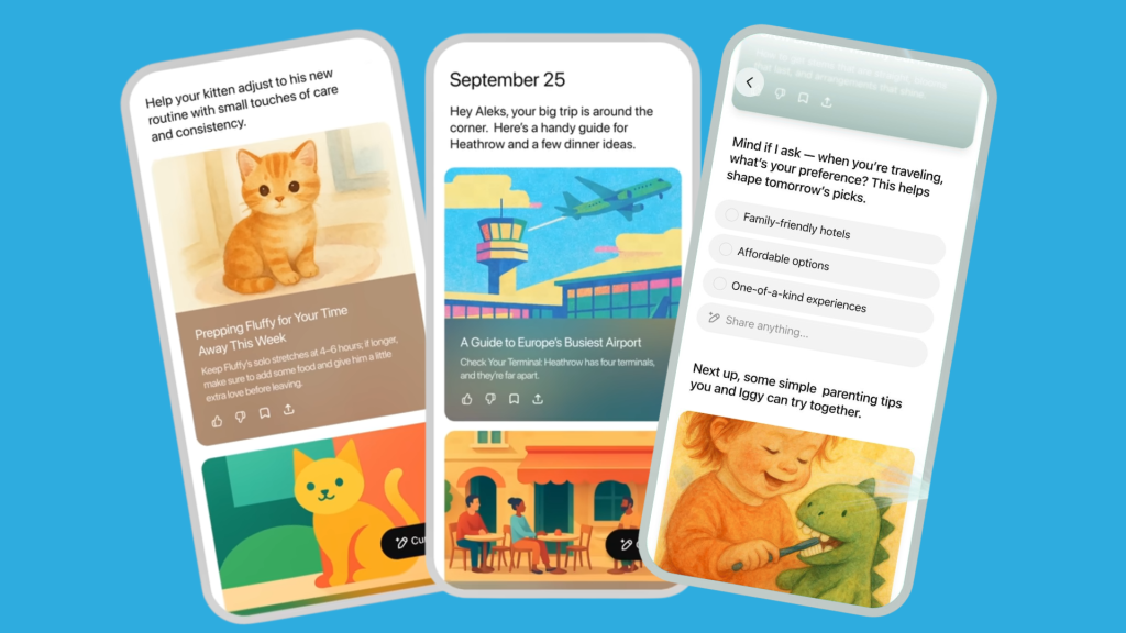 Onlangs introduceerde OpenAI ChatGPT Pulse, een nieuwe functie die momenteel alleen beschikbaar is voor Pro-gebruikers. Pulse geeft dagelijks 5 tot 10 gepersonaliseerde, visuele aanbevelingen, gebaseerd op de chatgeschiedenis, gebruikersvoorkeuren en gekoppelde apps zoals Gmail en Google Calendar. In tegenstelling tot de standaard ChatGPT-interactie doet Pulse dit proactief, dus de gebruiker hoeft niets te vragen.